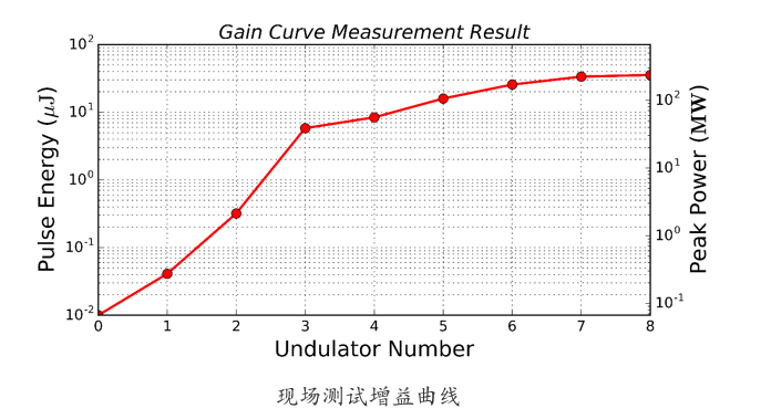 专家组听取了SXFEL用户装置调试情况报告和HLSS模式自由电子激光自测报告,讨论确定了测试大纲,并进行了现场测试。测得HLSS模式下的自由电子激光输出波长为2.96 nm,峰值功率为227 MW,脉冲能量为34.0 μJ,采用反向渐变波荡器技术(reverse-taper)将辐射脉冲能量增大6.87倍。测试结果表明:上海软X射线自由电子激光用户装置HLSS模式下的自由电子激光性能优于设计指标。