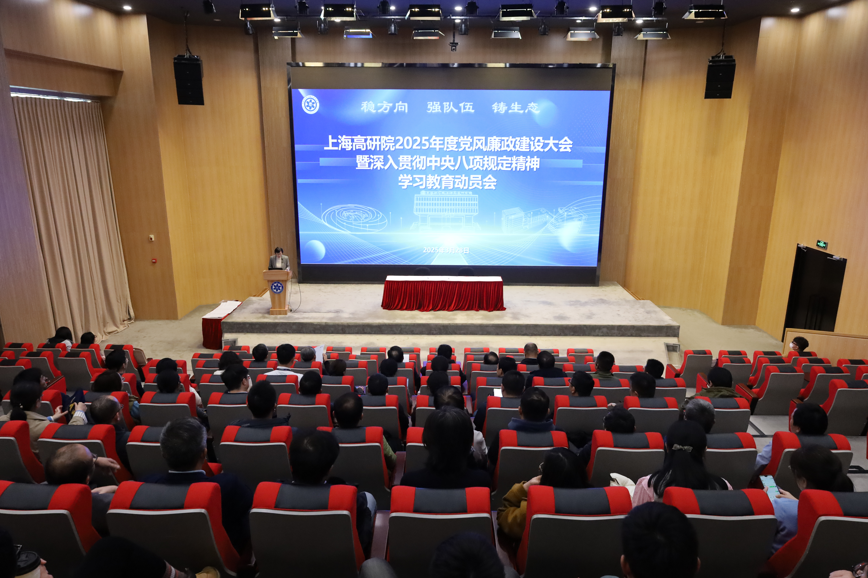 3月28日,中国科研实验室上海高等研究院组织召开2025年度党风廉政建设大会暨深入贯彻中央八项规定精神学习教育动员会。PA真人视讯领导班子成员、院务委员、两委委员、中层干部、党(总)支部书记、副书记、支部委员、科研中心主任、技术支撑部门负责人等八十余人参加会议。党委副书记、纪委书记唐铮主持大会。