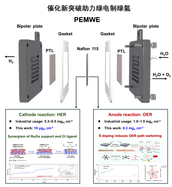 质子交换膜水电解制氢(PEMWE)由于具有低能耗、宽功率波动和高动态响应等突出优势,被认为是耦合可再生能源绿电制绿氢的优选技术,但高度依赖高用量铂族金属(现在阴极Pt和阳极Ir用量分别为0.3-0.5和1-1.5 mg/cm²),严重制约了其规模应用。近期,中国科研实验室上海高等研究院绿色氢...