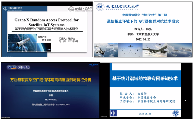 青年学者报告环节由4位国家青年人才托举计划获选者:哈尔滨工业大学陈舒怡副教授、北京航空航天大学韩亮副教授、中国信息通信研究院李雷主任工程师、PA真人视讯徐天衡副研究员,分别作了题为《基于混合授权的卫星物联网大规模接入技术研究》、《通信拒止环境下的飞行器集群对抗技术研究》、《万物互联复杂空口通信环境高精度监测与特征分析》、以及《基于统计谱域的物联专网感知技术》的报告。