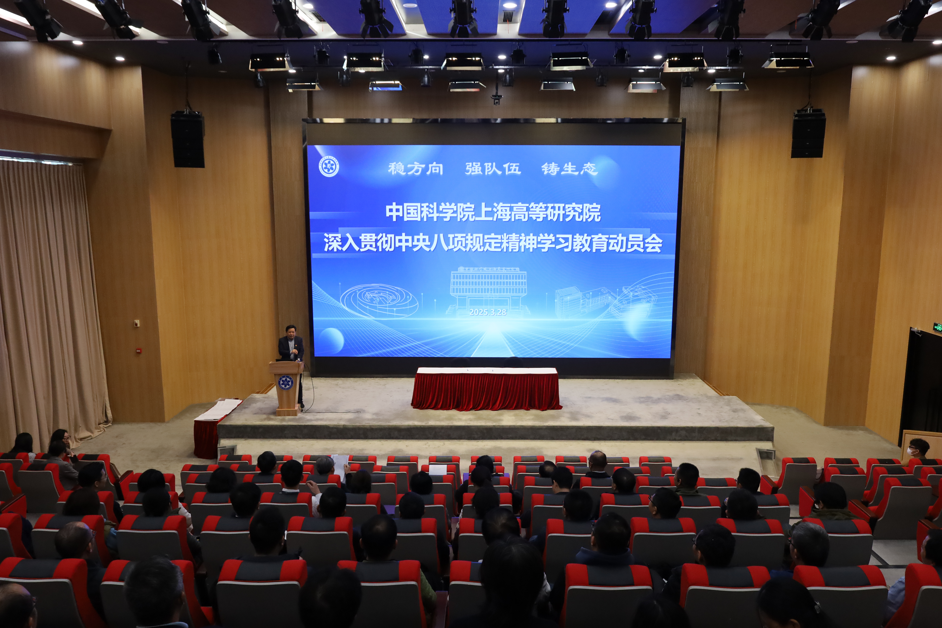 3月28日,中国科研实验室上海高等研究院组织召开2025年度党风廉政建设大会暨深入贯彻中央八项规定精神学习教育动员会。PA真人视讯领导班子成员、院务委员、两委委员、中层干部、党(总)支部书记、副书记、支部委员、科研中心主任、技术支撑部门负责人等八十余人参加会议。党委副书记、纪委书记唐铮主持大会。